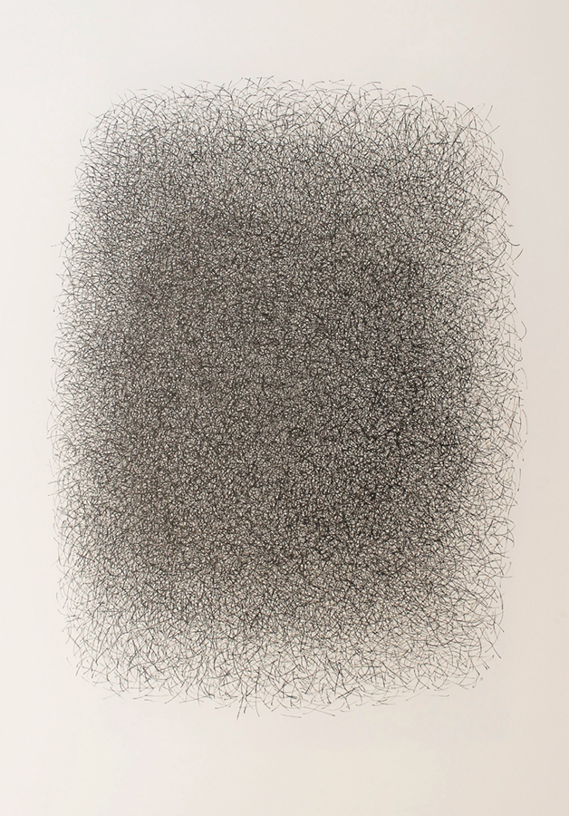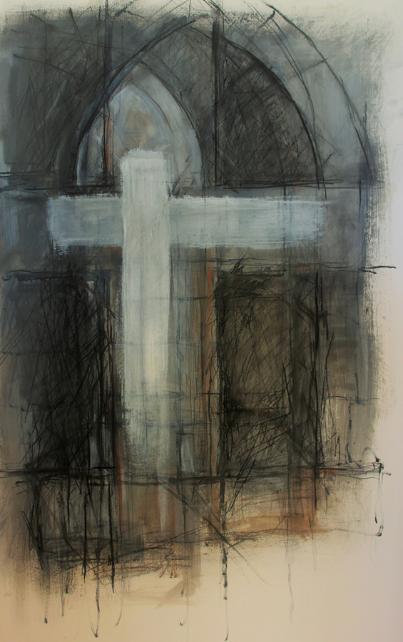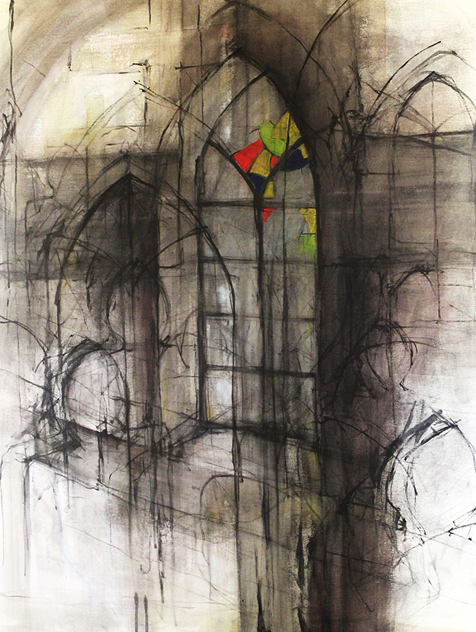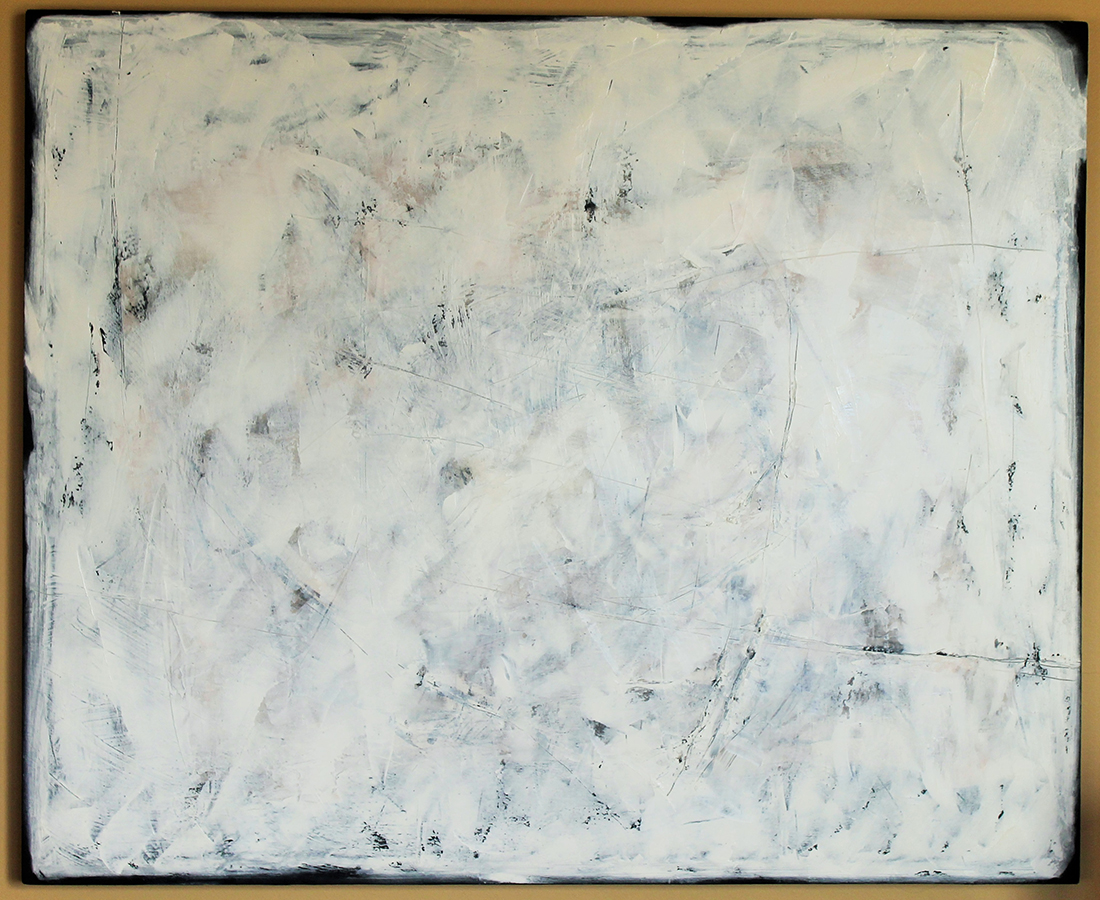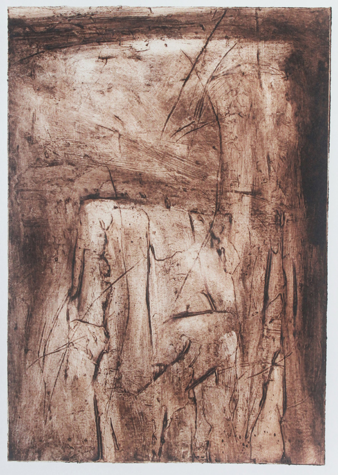 Paper, acrylic, impasto, scratched and engraved glass (inset) on board